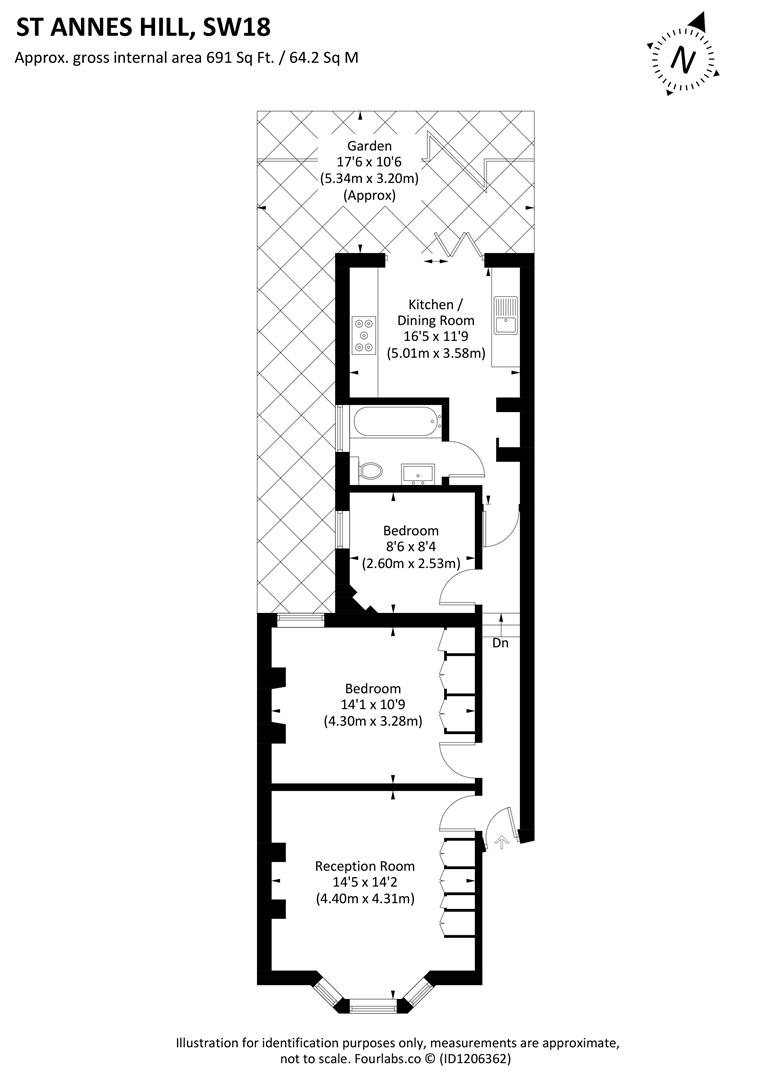 Two bedroom large ground floor garden flat which is fantastically located in central Wandsworth close to Wandsworth Common, central shopping areas, Northcote Road and Clapham Junction. Spread across the entire ground floor of a lovely Victorian terraced house, the flat is in immaculate internal order Upon entering you are greeted with an inviting corridor that links the front reception room with the kitchen at the rear. The reception/living room is large, bright, well decorated and retains some great period features; there are also built in shelving and beautiful original exposed floorboards. Further down the corridor is the main double bedroom which expands to 14’1” by 10’9” and a very sizeable second bedroom. Behind the bedrooms is a large family bathroom and doors to a very spacious, incredibly modern and well laid out kitchen/dining room that has sliding doors onto a private decked south westerly facing rear garden.St Ann’s Hill is located within a 10 minute walk of Wandsworth town Station and also has easy access routes to Clapham Junction, Putney, Earlsfield and Tooting. The area is surrounded by excellent primary schools and a wealth of bars, restaurants and shops. Available immediately